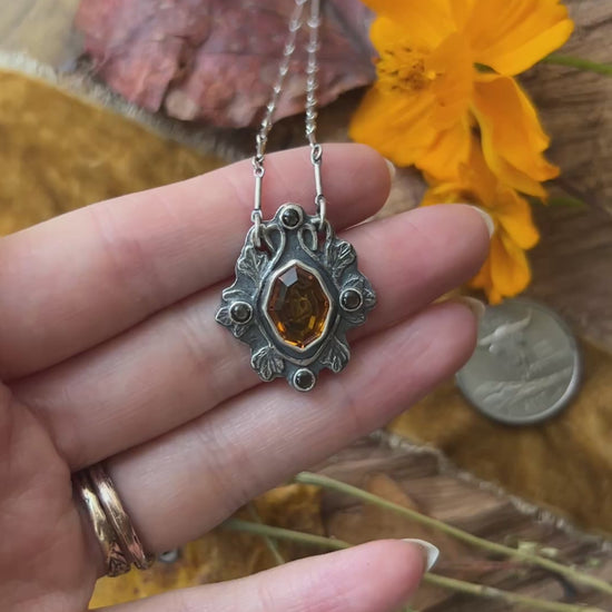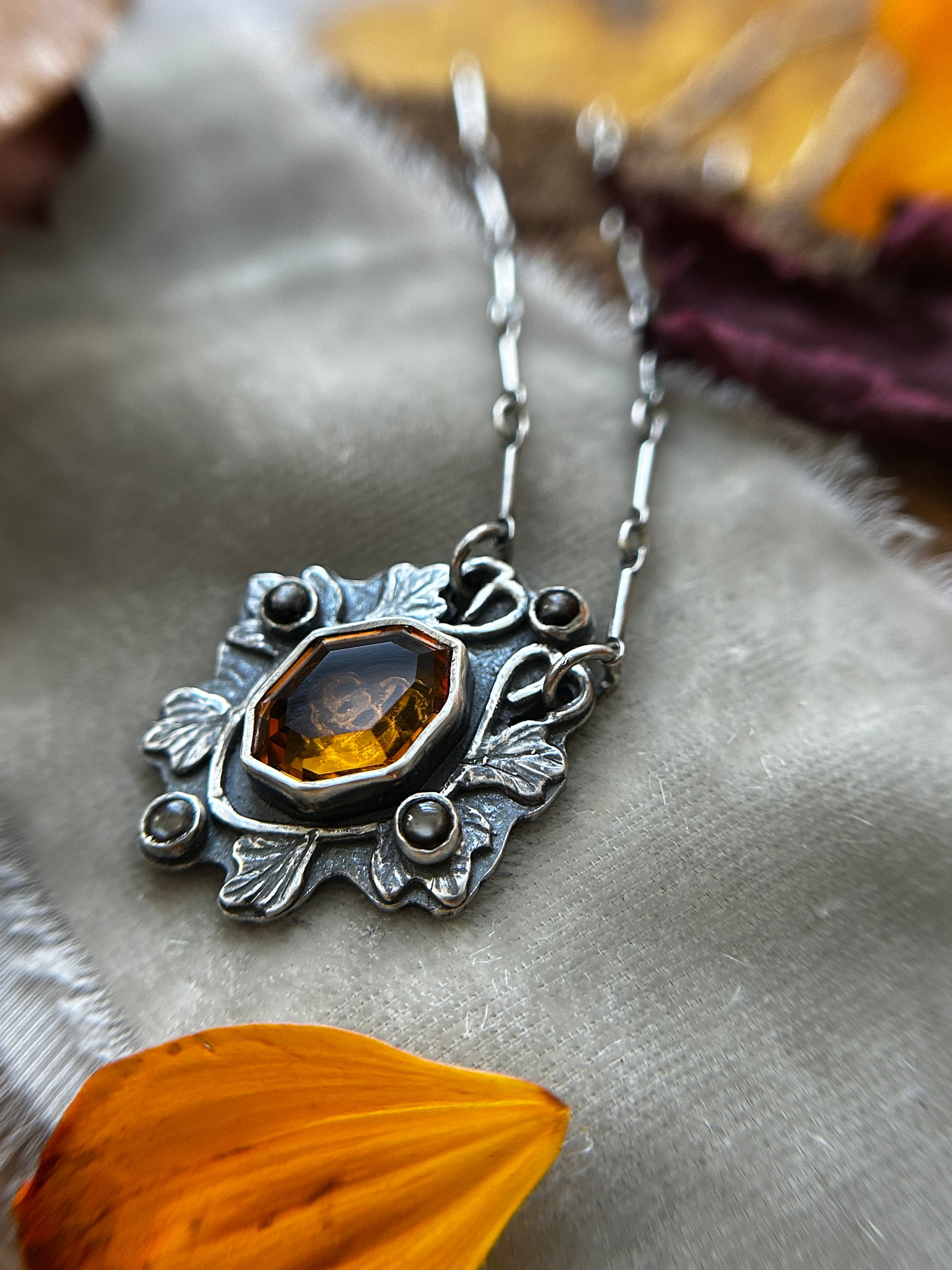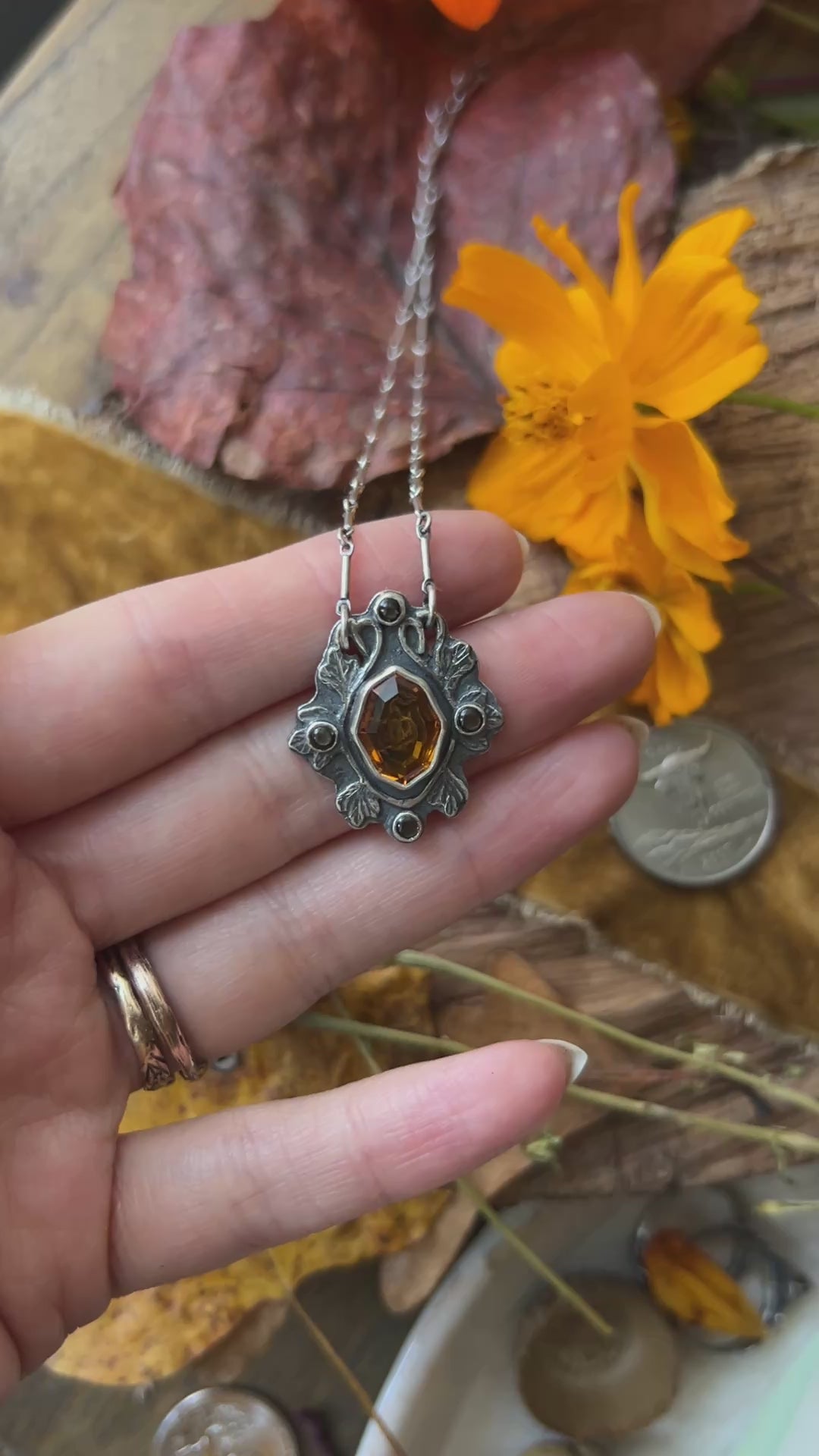 All Hallows Eve Jack-o-lantern necklace with santa ana madiera citrine stone- sterling silver jewelry