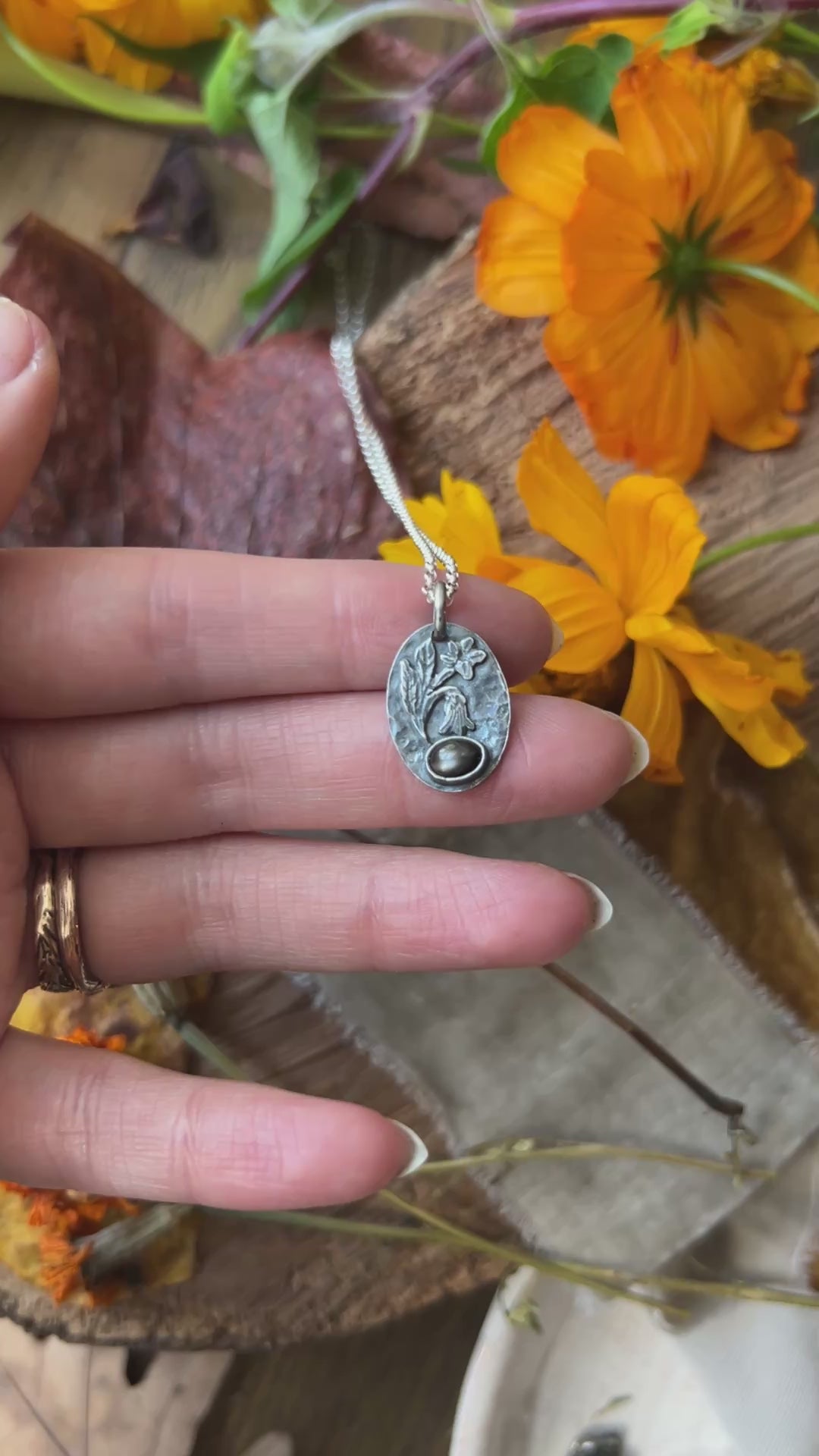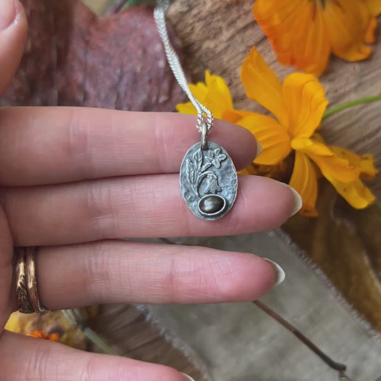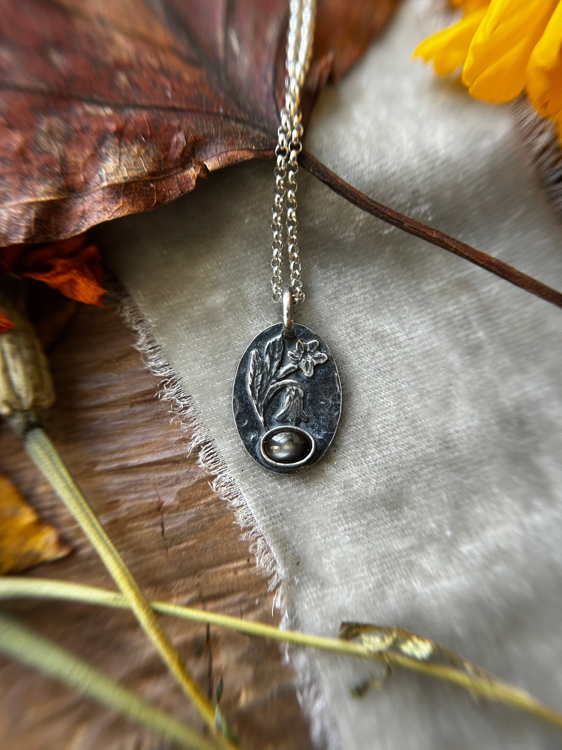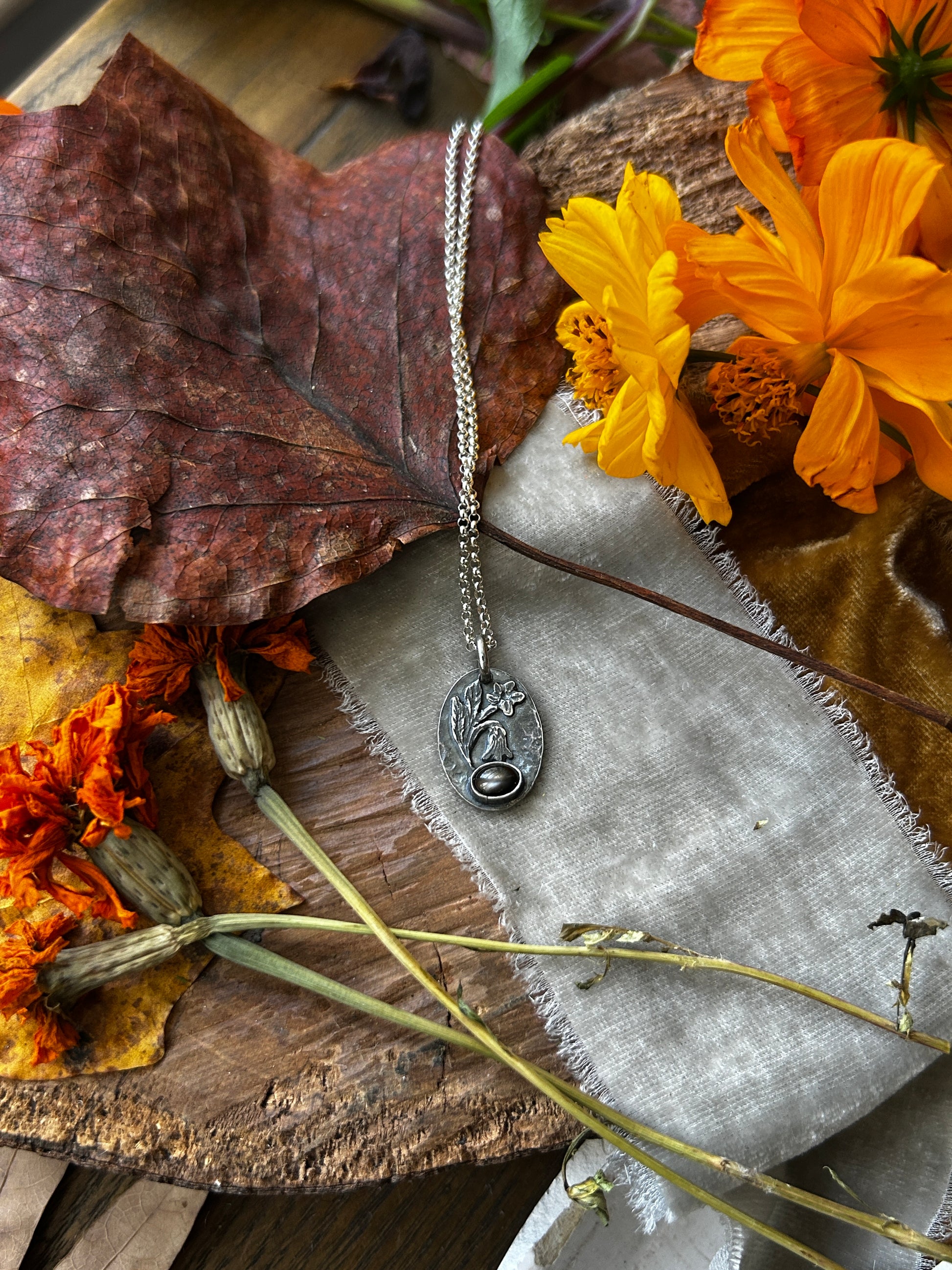 Deadly belladonna flower with black star sapphire necklace- Sterling silver jewelry ready to ship