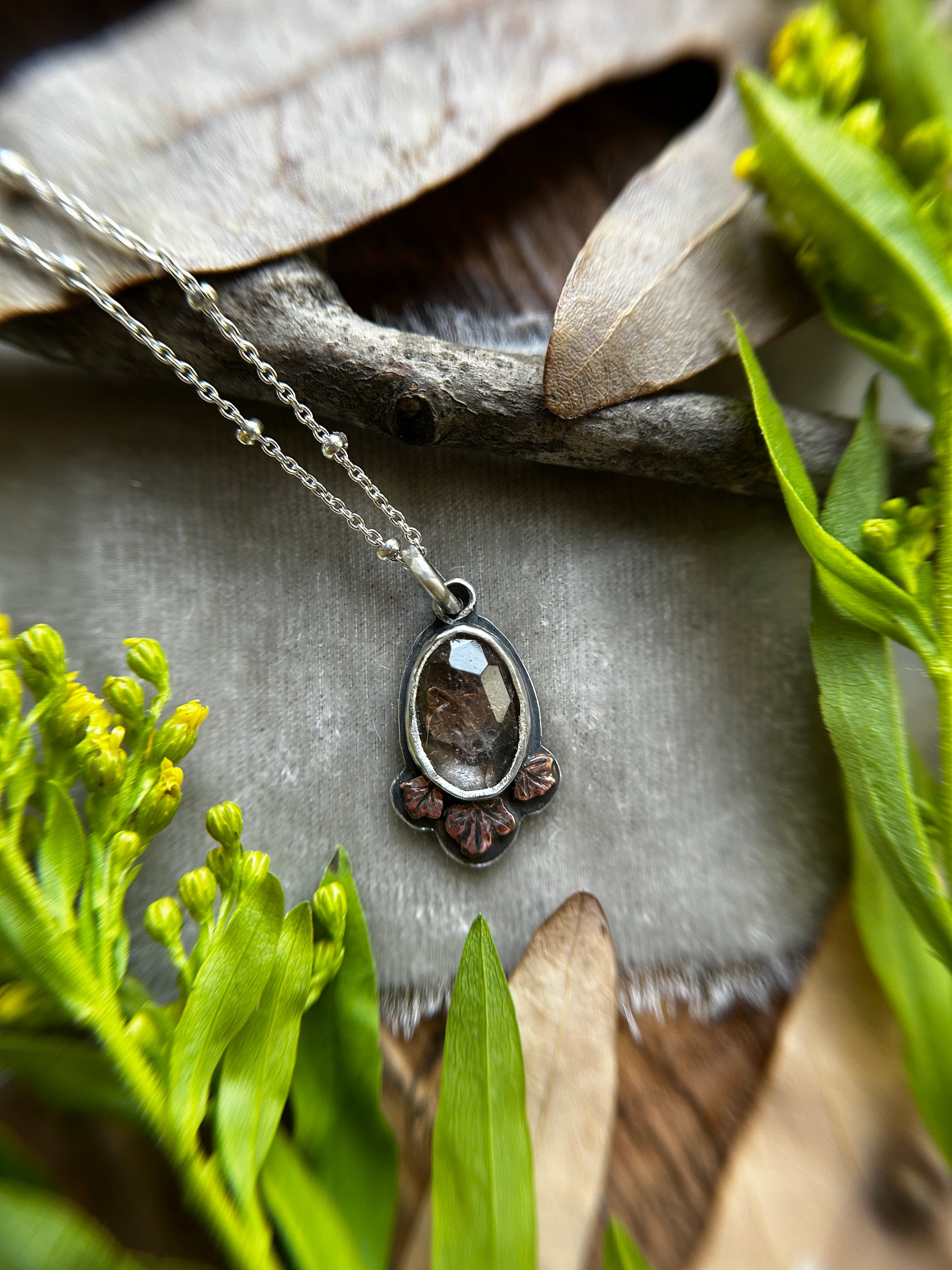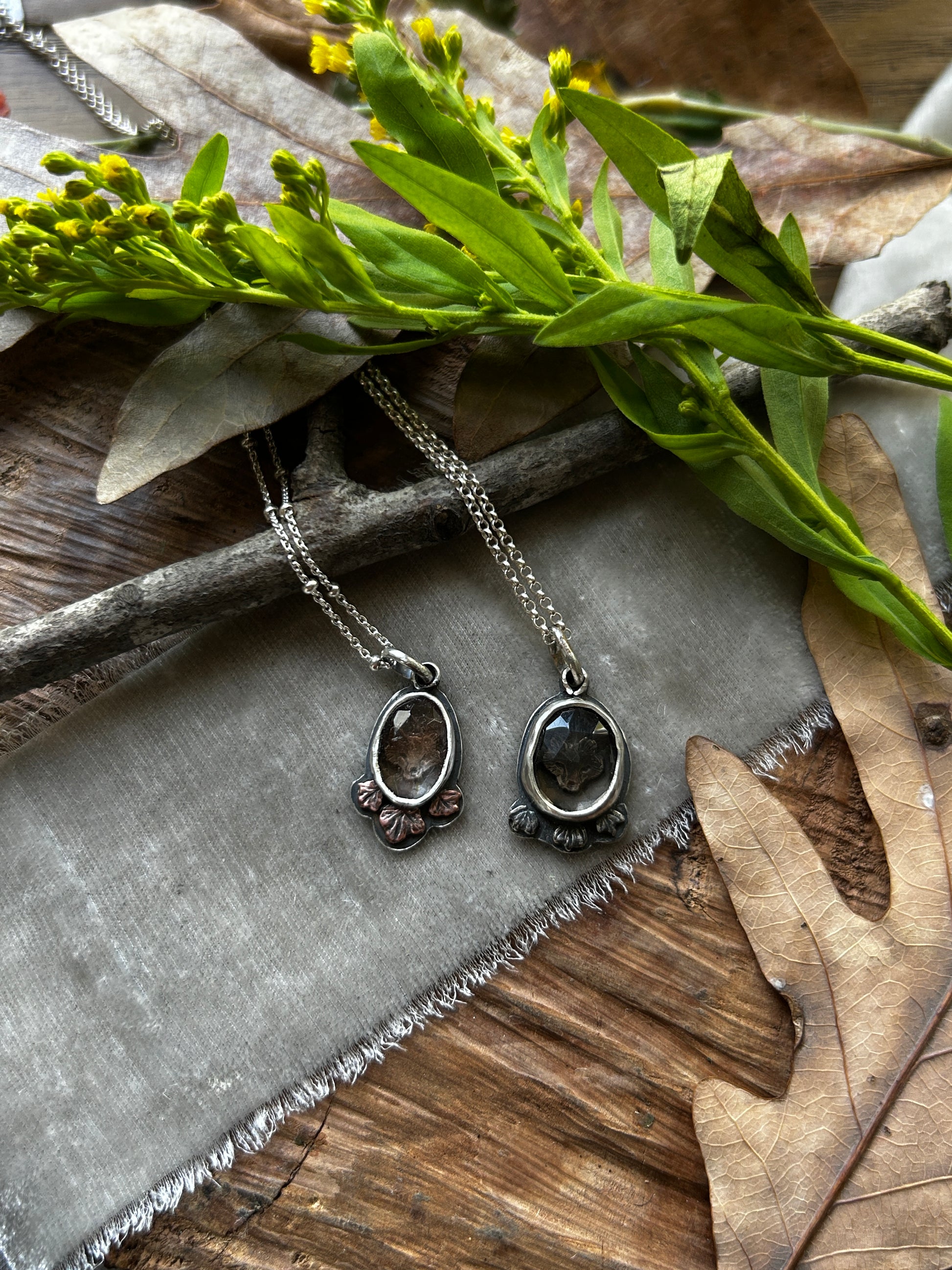Forest Fox Necklace in Imperial Topaz or Smoky Quartz- sterling silver copper jewelry