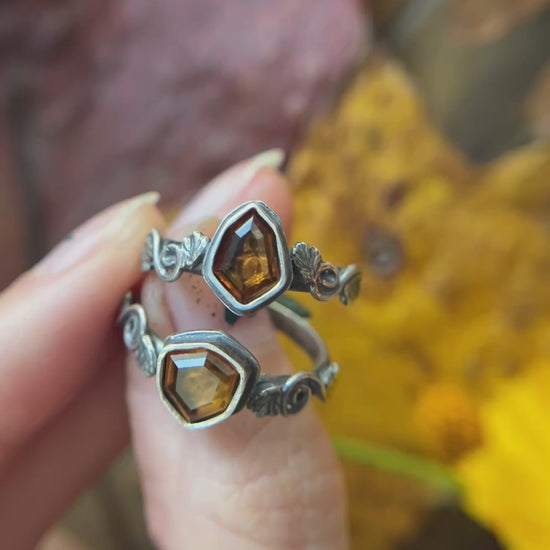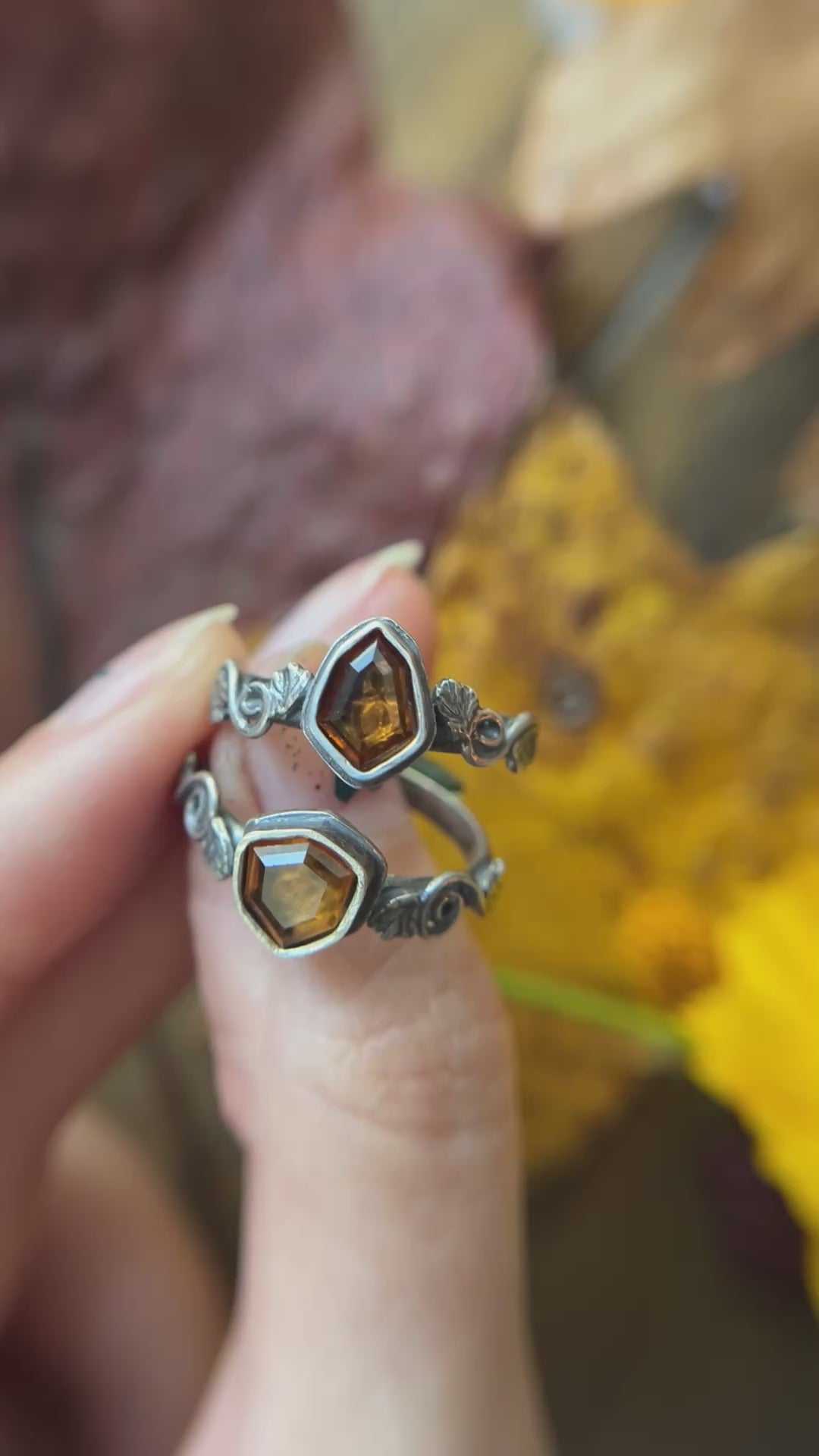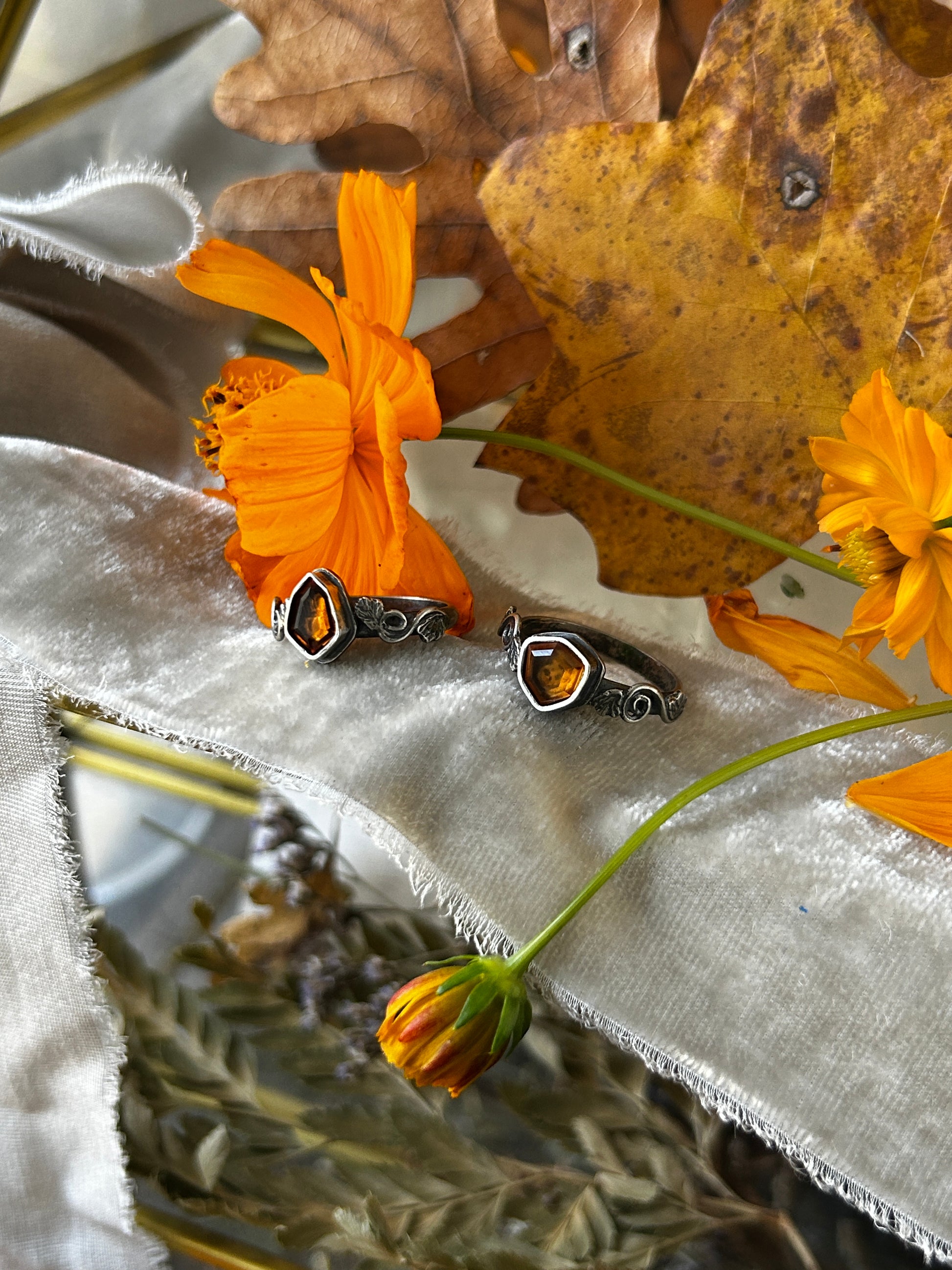 Pumpkin Rings with Hessonite Garnet gems- Sterling silver jewelry
