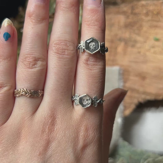 Skull & ivy ring -memento mori sterling silver with quartz jewelry