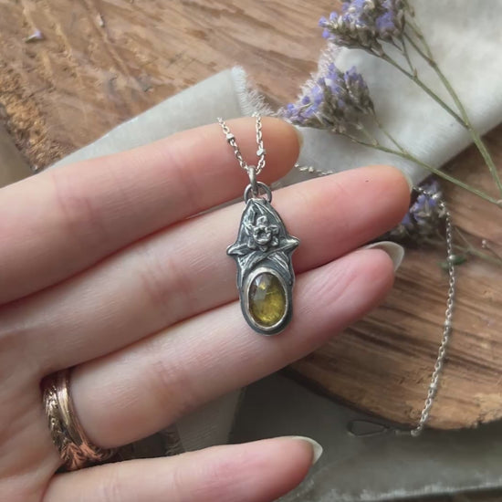 Sphene and Daffodil Necklace- sterling silver floral jewelry